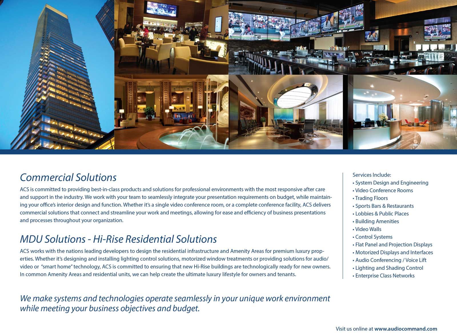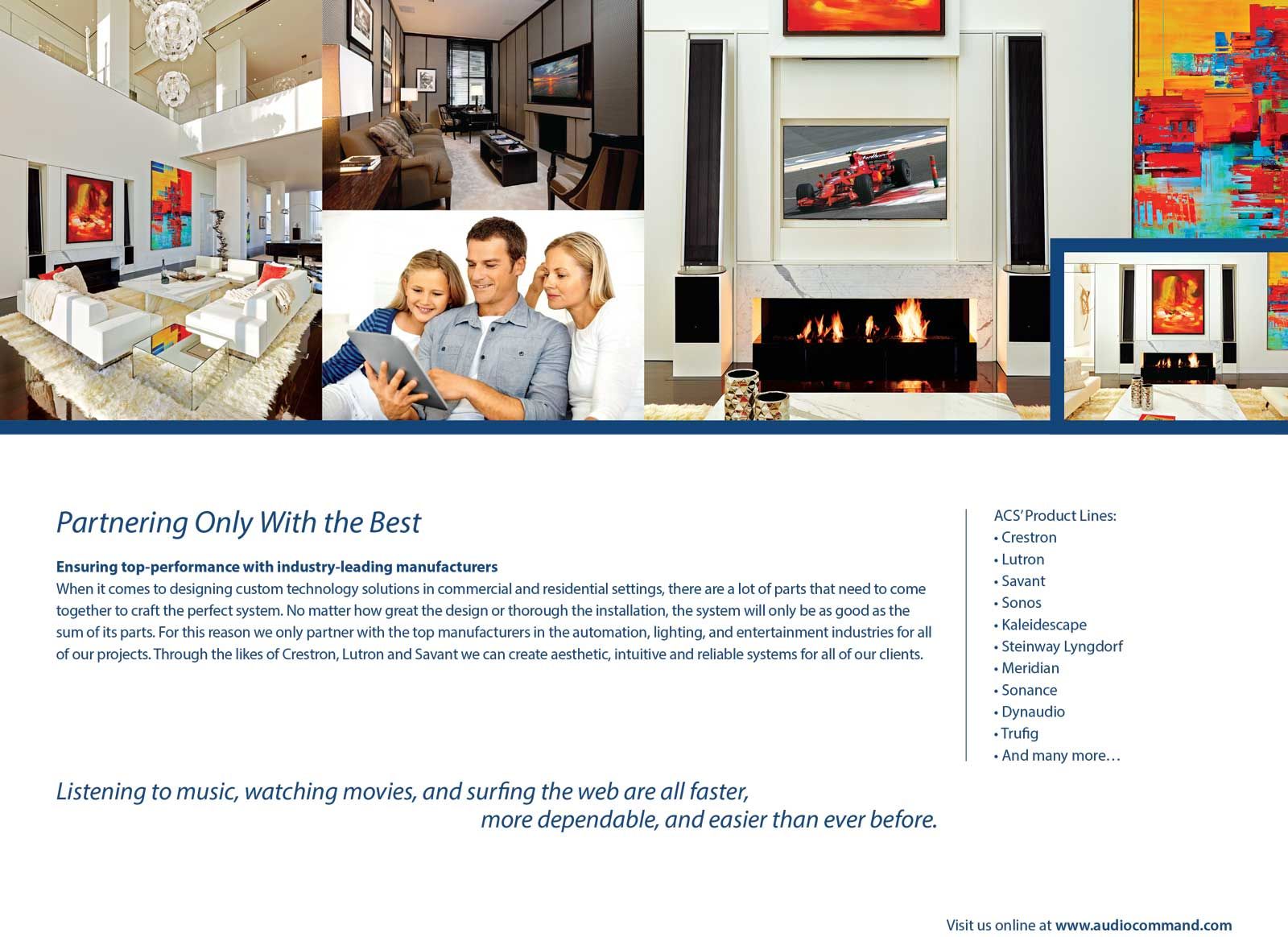Discover the innovative smart home solutions that have set Audio Command Systems apart since 1976. Our brochure showcases state-of-the-art home automation and integration, award-winning designs, and trusted expertise that cater to luxury living. We have made our brochure conveniently available online. Scroll through our presentation to dive into our services, our process, and examples of our design proposals and system engineering. Additionally, we invite you to downloadd it now to explore how we can bring smarter, more elegant living spaces to life.